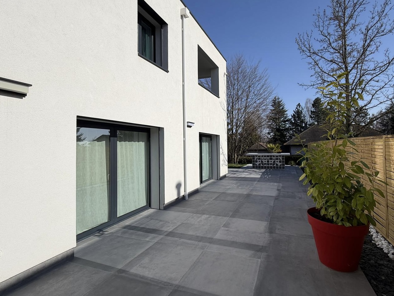 Niché dans une impasse au cœur d’un quartier résidentiel calme et recherché de Prévessin-Moëns, à proximité immédiate des commodités du centre-bourg et à quelques pas de l’école et collège, venez découvrir cette très belle maison familiale à l'architecture contemporaine.